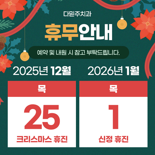 | 작성자 | 다믿주치과 | 등록일 | 25-12-22 | 조회수 | 4회 |