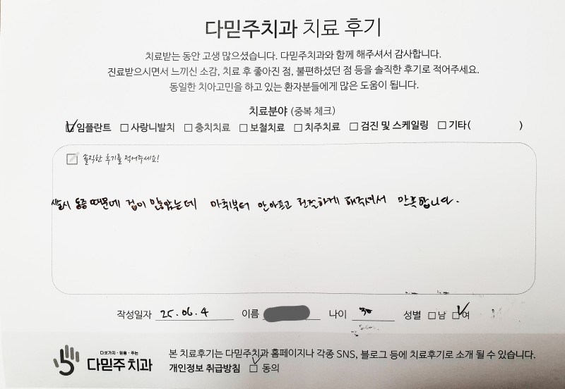 제목 김○○ 님의 임플란트 생생후기 카테고리 임플란트