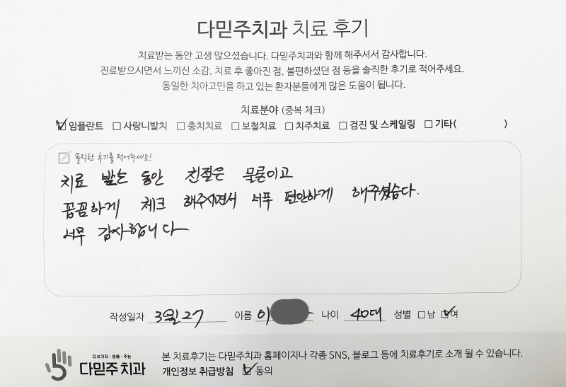 제목 이○○ 님의 임플란트 생생후기 카테고리 임플란트