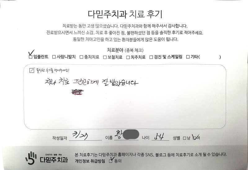 제목 황○○ 님의 임플란트 생생후기 카테고리 임플란트